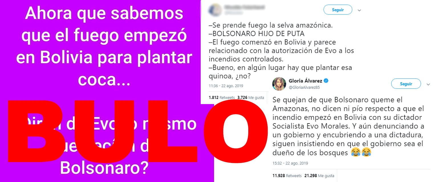 Otra versión del bulo dice que el fuego empezó en Bolivia "para plantar coca". El investigador del CSIC Fernando Valladares considera que los cultivos de coca "son un factor" de los incendios "aunque no se puede saber hasta qué punto" todavía.