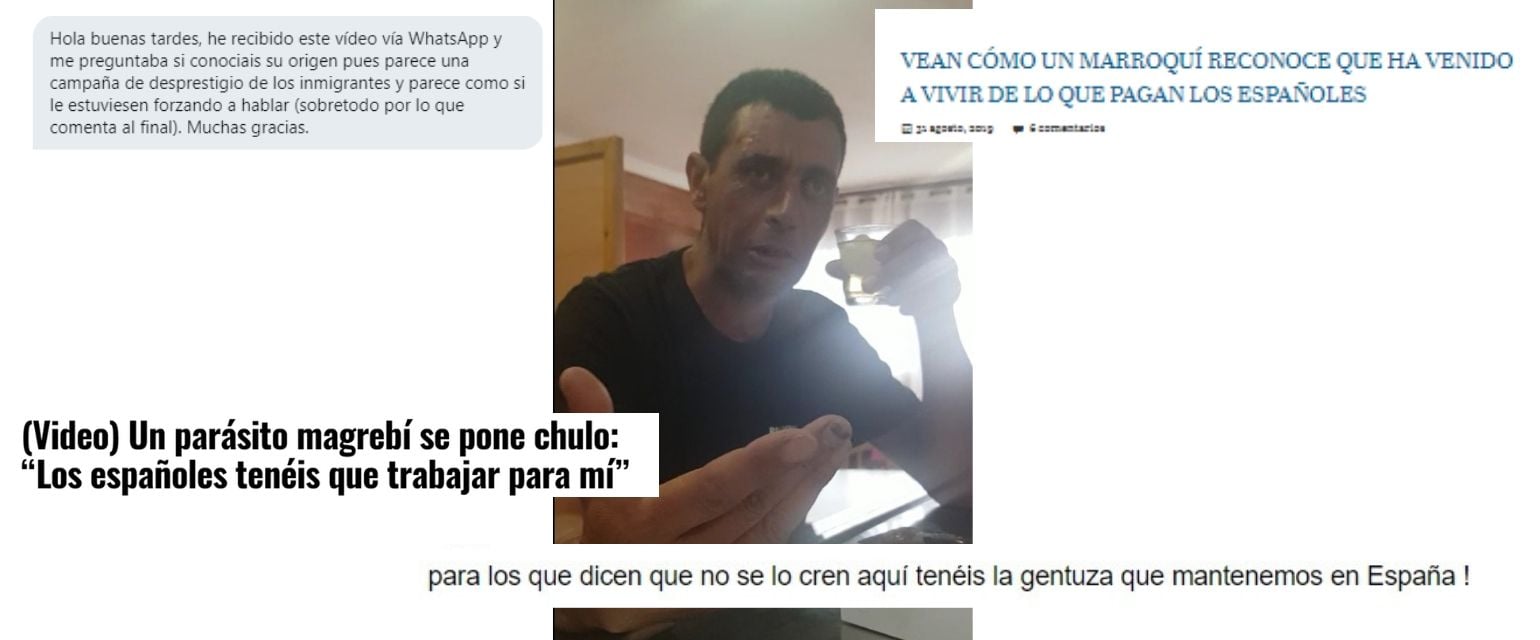 Algunas webs dicen que se trata de "un marroquí" que "reconoce que ha venido a vivir de lo que pagan los españoles". Otras que es "un parásito magrebí" que "se pone chulo". También nos habéis preguntado si se trata de una campaña de desprestigio o no hacia los migrantes.