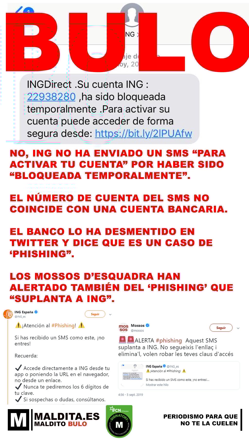 Los Mossos d'Esquadra han alertado también del 'phishing' que "suplanta a ING".