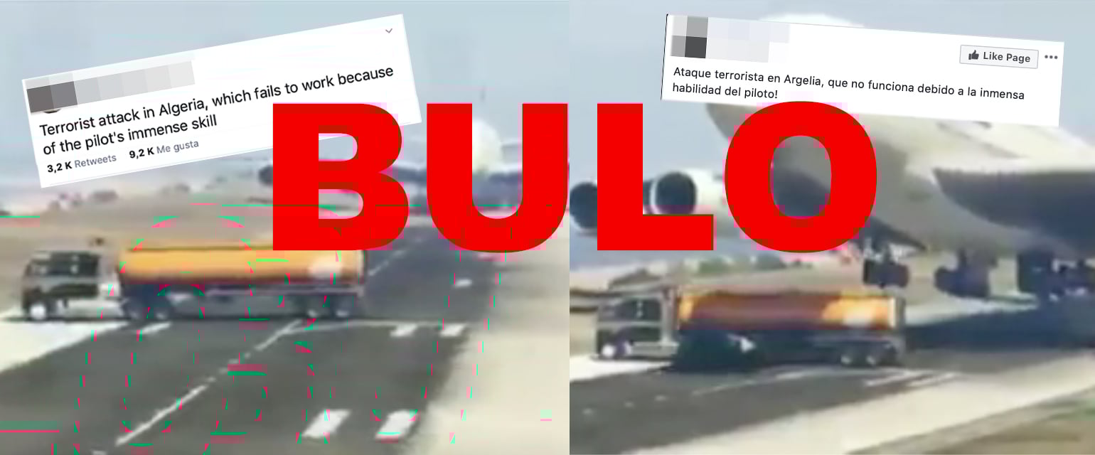 Un enorme avión Airbus está aterrizando cuando un camión se para en la pista de aterrizaje. En el último momento, la aeronave consigue evitar la colisión volviendo a despegar. Si sabes de lo que te estamos hablando, puede que te hayan intentado colar un bulo y es que este vídeo se ha estado difundiendo afirmando que se trata de un intento de atentado en Argelia. Sin embargo, estas imágenes no son una grabación de un atentado, son capturadas del videojuego GTA 5.