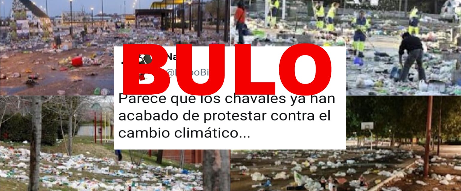 Estamos en la semana por el clima y, como sucede en otros casos, en los últimos días se han multiplicado los bulos sobre las protestas y reivindicaciones que ha habido. Sin entrar a valorar si la intención del creador era irónica o no, se están viralizando unas fotos de espacios llenos de basura que se vinculan a las protestas contra el cambio climático como si fueran realmente de las mismas. Pero esas imágenes no corresponden a manifestaciones climáticas. Os lo explicamos.