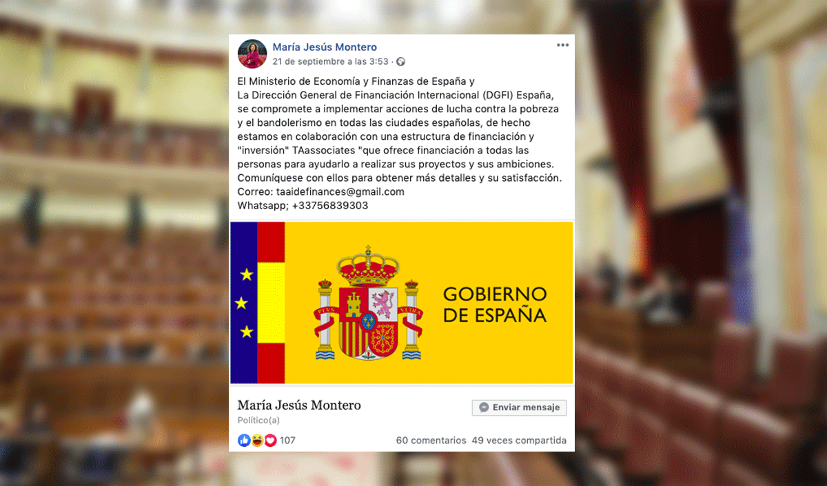 En la publicación promocionada, que tiene faltas de ortografía, frases sin sentido y fue publicada a las 3:53 de la mañana del 21 de septiembre, Montero anuncia supuestamente una iniciativa del "Ministerio de Economía y Finanzas de España", que en realidad se llama Ministerio de Economía y Empresa. Además, María Jesús Montero no es titular de dicho ministerio, sino del de Hacienda.