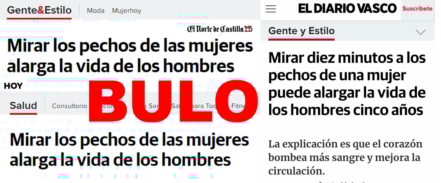 Nos habéis enviado una captura de pantalla de una pieza de El Diario Vasco que circula por las redes sociales y que dice que "mirar diez minutos a los pechos de una mujer puede alargar la vida de los hombres cinco años" según un estudio "publicado en la revista New England Journal of Medicine". Es un bulo.