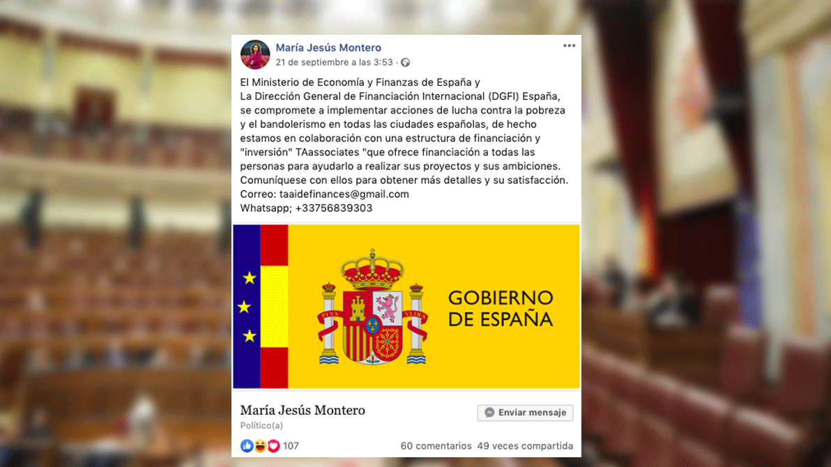 En la publicación promocionada, que tiene faltas de ortografía, frases sin sentido y fue publicada a las 3:53 de la mañana del 21 de septiembre, Montero anuncia supuestamente una iniciativa del "Ministerio de Economía y Finanzas de España", que en realidad se llama Ministerio de Economía y Empresa. Además, María Jesús Montero no es titular de dicho ministerio, sino del de Hacienda.