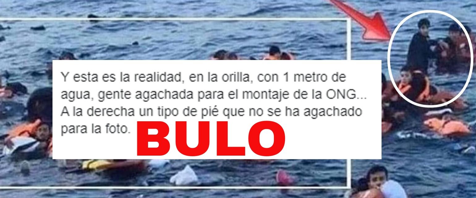 Siguen siendo bulos. La treintena de personas que aparece en la foto no está "disimulando" estar en peligro como aseguran las webs. Además, no hay pruebas de que estas personas hayan sido pagadas por periodistas para "hacer ver que se ahogan".
