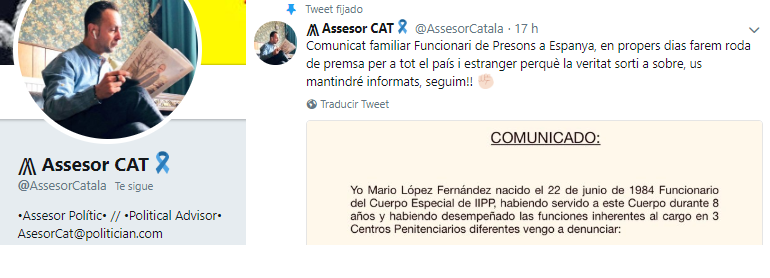 El falso funcionario del Cuerpo Especial de Instituciones Penitenciarias, "Mario López Fernández", se remite a Rubén López García: un supuesto familiar y supuesto representante legal que responderá en la cuenta de Twitter @assesorcatala. ¿Quién es este Rubén López?