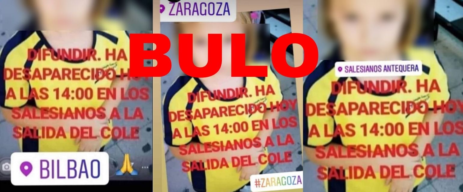 Alicante, Valencia, Zaragoza, Bilbao, Córdoba, Antequera (Málaga), Alcoy (Alicante)... Estas son algunas de las ciudades donde se dice que ha desaparecida una niña "hoy a las 14:00 en Los Salesianos a la salida del cole". Esta alerta falsa se mueve con un texto incrustado sobre una foto de una niña con un uniforme escolar de color amarillo y azul. Es un bulo.