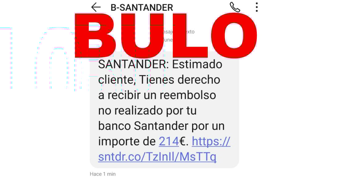 Nos habéis avisado de una comunicación, supuestamente del Banco Santander, en la que te avisan de que tienes un reembolso pendiente de la compañía por un importe de 214 euros. Además, en el SMS se incluye un link. Cuidado, porque no es una comunicación oficial del Banco Santander: es phishing.