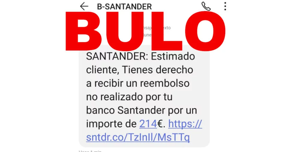 Nos habéis avisado de una comunicación, supuestamente del Banco Santander, en la que te avisan de que tienes un reembolso pendiente de la compañía por un importe de 214 euros. Además, en el SMS se incluye un link. Cuidado, porque no es una comunicación oficial del Banco Santander: es phishing.