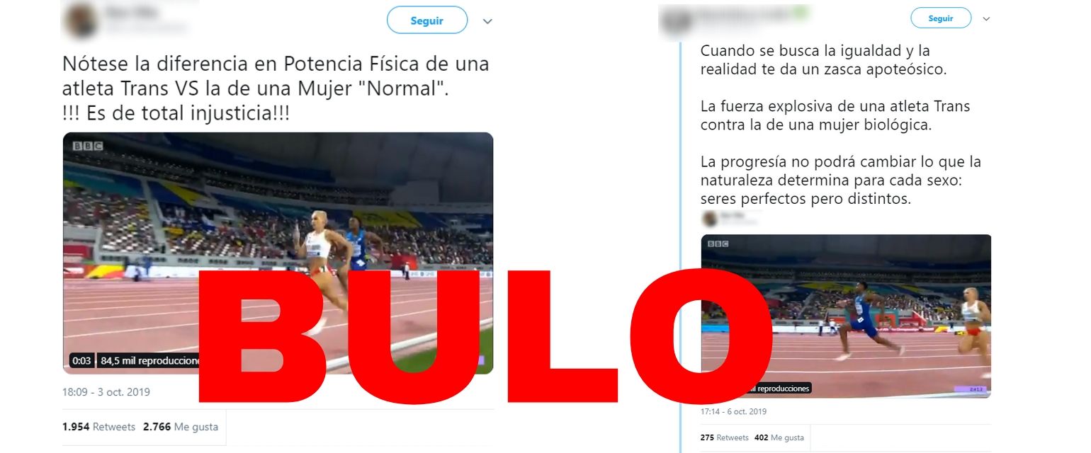 En redes sociales se ha viralizado un vídeo en el que se ve a lo que se llama "una atleta trans" adelantar a lo que llaman "una mujer normal" o "mujer biológica". Es un bulo.