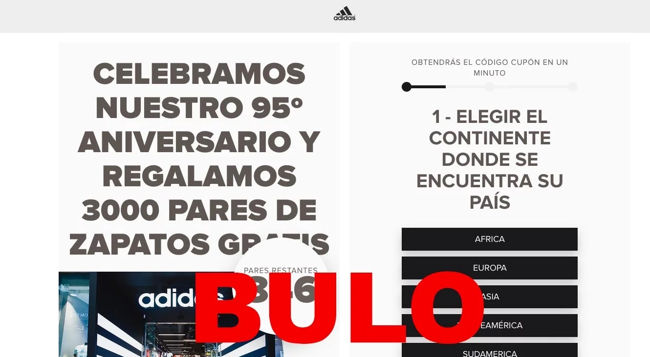 Por lo tanto, no es cierto que Adidas esté regalando 3.000 zapatillas por su 95º aniversario. Se trata de un timo.