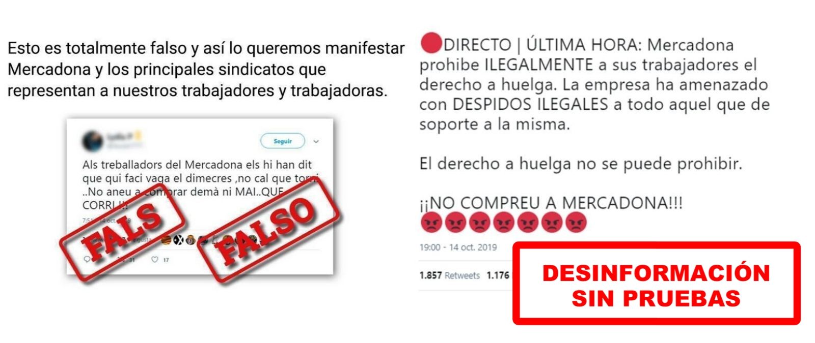 No hay ninguna prueba de ello. No se aporta ninguna evidencia que apoye esta afirmación y desde Mercadona, a pregunta de Maldita.es, afirman que "es totalmente falso". Además, el sindicato mayoritario en los centros de Mercadona en Cataluña, UGT, también nos confirma que no hay ninguna denuncia de este tipo y nos remiten al comunicado conjunto emitido por la empresa**: