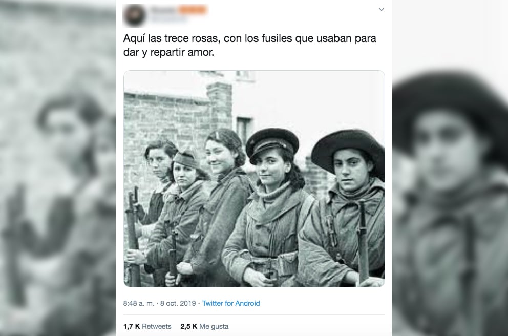 Está circulando por redes sociales una fotografía de cinco mujeres armadas de la que se dice que son las denominadas Trece Rosas, con afirmaciones como la siguiente: "Aquí las Trece Rosas, con los fusiles que usaban para dar y repartir amor...". Os contamos lo que sabemos al respecto: