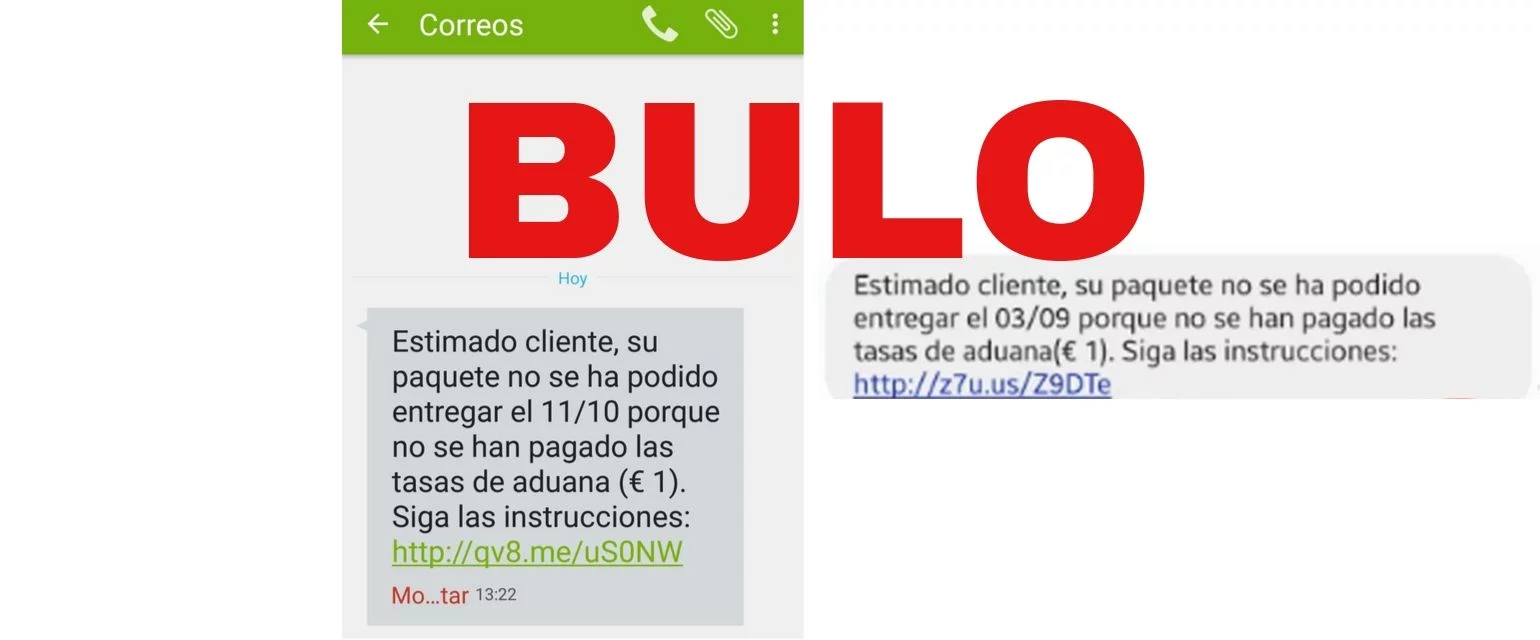 Este SMS vuelve a circular y dice: "Estimado cliente, su paquete no se ha podido entregar el [fecha] porque no se han pagado las tasas de aduana (€ 1). Sigas las instrucciones [url], sin embargo, no es de Correos. Se trata de una estafa.