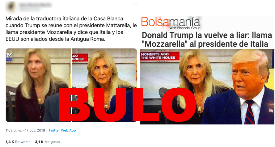 Es posible que en los últimos días hayas visto fotos de "la traductora italiana de la Casa Blanca" poniendo cara de asombro después de que el presidente de Estados Unidos, Donald Trump, llamara supuestamente "presidente Mozzarella" al presidente de Italia, Sergio Mattarella, y dijera que los dos países "son aliados desde la Antigua Roma". Si es así, debes saber que no ha dicho ni una cosa ni la otra.