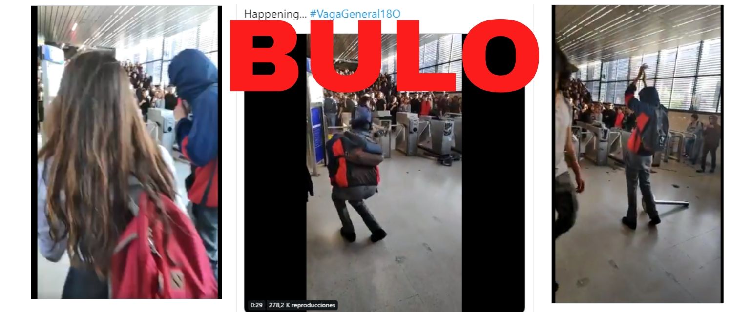 Por lo tanto, este vídeo de varios jóvenes destrozando los torniquetes del metro no corresponde a la huelga general en Cataluña: ocurrió en Chile.