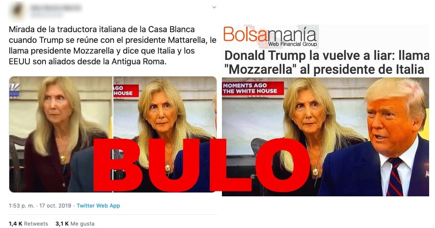 Es posible que en los últimos días hayas visto fotos de "la traductora italiana de la Casa Blanca" poniendo cara de asombro después de que el presidente de Estados Unidos, Donald Trump, llamara supuestamente "presidente Mozzarella" al presidente de Italia, Sergio Mattarella, y dijera que los dos países "son aliados desde la Antigua Roma". Si es así, debes saber que no ha dicho ni una cosa ni la otra.