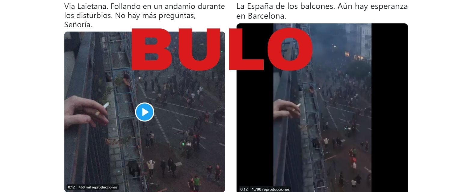 Nos habéis preguntado y se está difundiendo por las redes un vídeo de dos personas teniendo sexo en un andamio mientras hay manifestantes en la calle. Estas imágenes se mueven con los mensajes de "Via Laietana. Follando en un andamio durante los disturbios. No hay más preguntas, Señoría", "La España de los balcones. Aún hay esperanza en Barcelona" y con la etiqueta de Huelga General 18-O tras la sentencia del procés en Cataluña. Esto es un bulo. Las imágenes grabadas no corresponden a Cataluña. Ni siquiera es España. Ocurrió en Hamburgo (Alemania) en 2017, durante las manifestaciones del G-20.