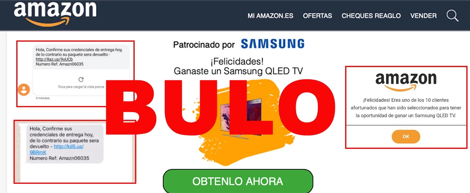 Además, desde la Policía de Alcorcón han alertado de phishing en un caso similar en el que supuestamente Amazon envía por SMS un aviso para recoger un móvil Samsung que también tiene como número de referencia "Amazn06035".