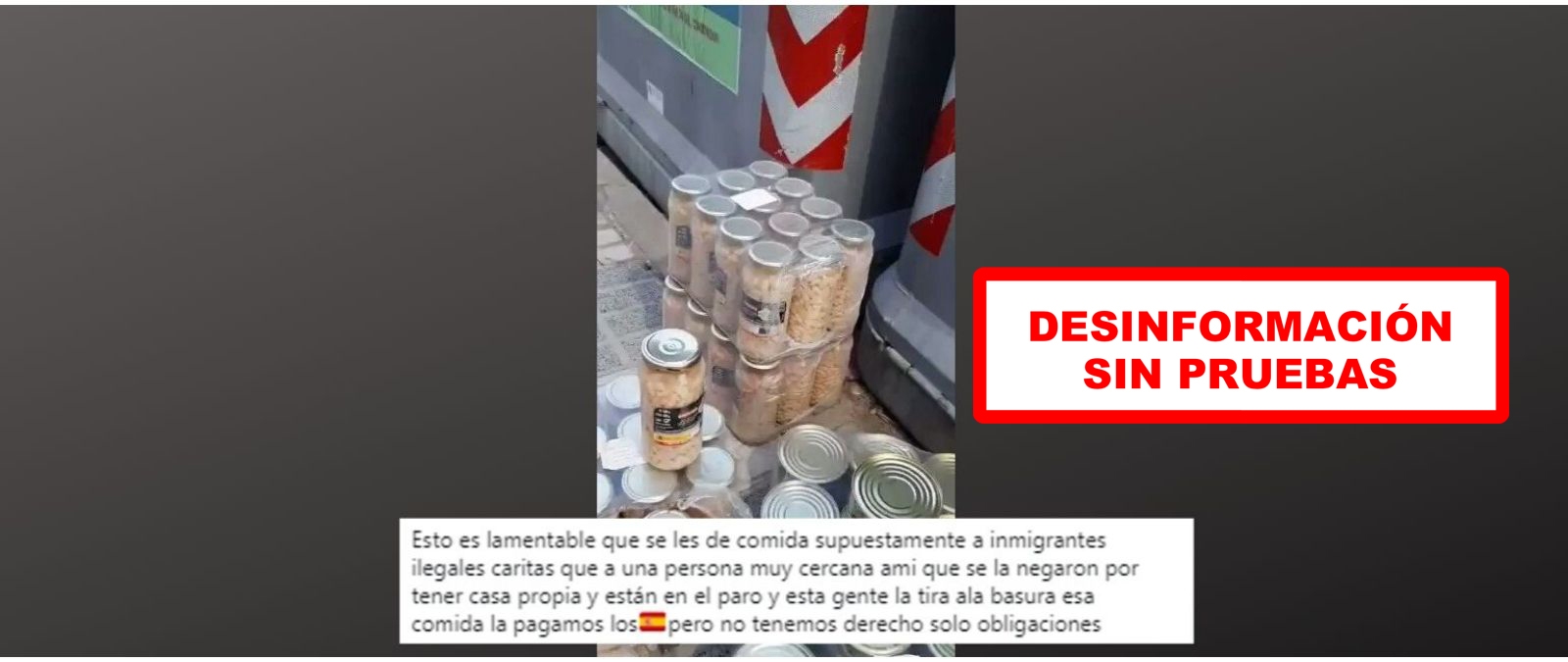 A raíz de esta escena usuarios en redes han asegurado que "es lamentable que se les dé comida supuestamente a inmigrantes ilegales Cáritas que a una persona muy cercana a mí que se la negaron por tener casa propia y están en el paro y esta gente la tira a la basura. Esa comida la pagamos los [españoles] pero no tenemos derecho, sólo obligaciones". Sin embargo, no hay pruebas de que estos botes de judías blancas y verdes las hayan tirado "inmigrantes".