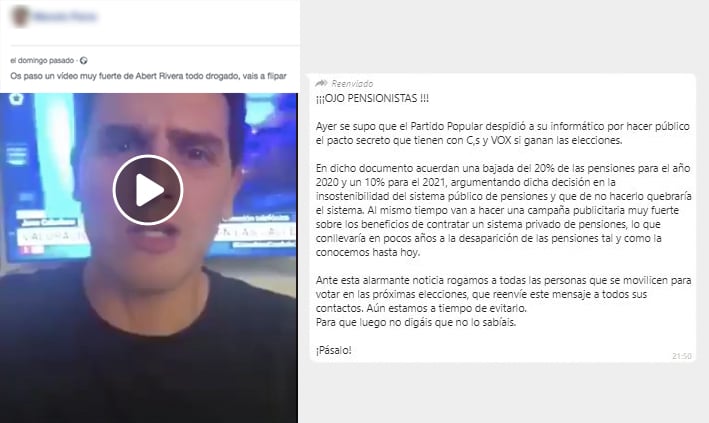 Se ha hecho viral una cadena de WhatsApp sin pruebas, que afirma que PP, Vox y Ciudadanos han llegado a un acuerdo "secreto" para bajar las pensiones si ganan las elecciones.