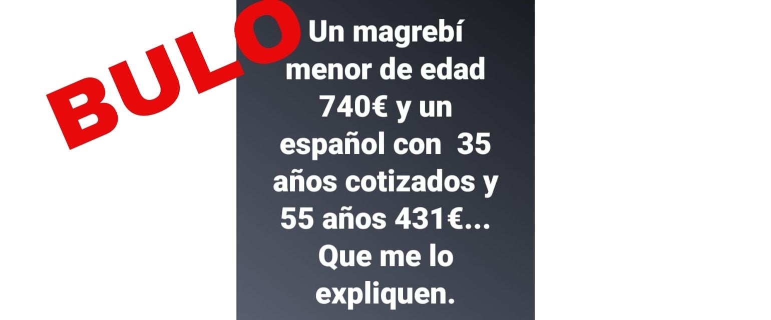 Nos habéis preguntado a través de nuestro número de WhatsApp por un cartel que se mueve asegurando que "un magrebí menor de edad 740 euros y un español con 35 años cotizados y 55 años 431 euros". Es un bulo.