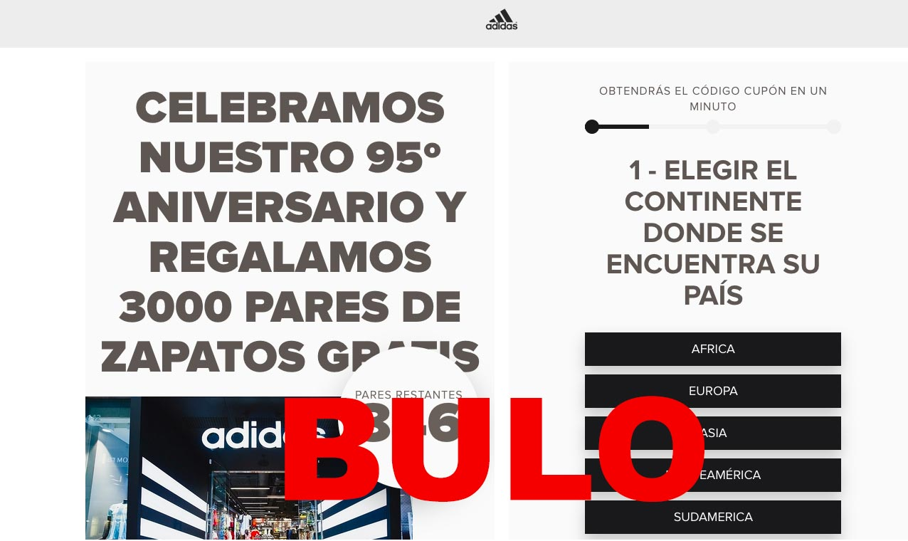 Por lo tanto, no es cierto que Adidas esté regalando 3.000 zapatillas por su 95º aniversario. Se trata de un timo.