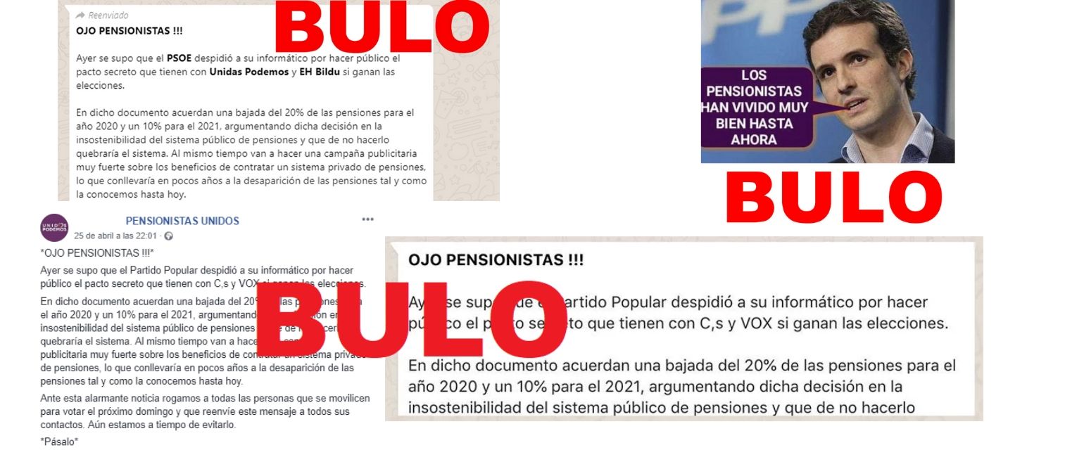 No hay pruebas de que PP, Ciudadanos y Vox hayan llegado a un pacto secreto que incluye bajar un 20% las pensiones en 2020 y un 10% en 2021 si ganan las elecciones