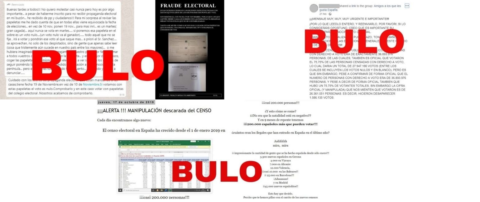 Nos volvéis a preguntar sobre supuestos pucherazo o de fraude electoral en las elecciones generales del 10 de noviembre. Como ya hicimos tras las elecciones del 28 de abril de 2019, os recopilamos los bulos y las desinformaciones sobre supuestos fraudes que hemos desmentidos e iremos ampliando.
