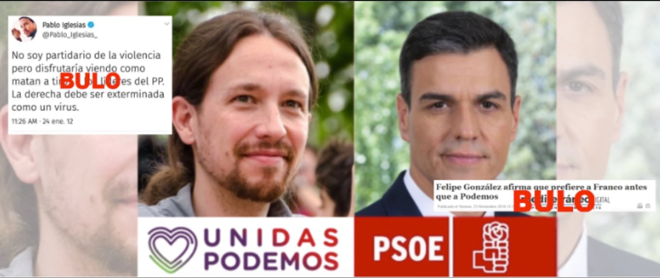 Tras el preacuerdo de Gobierno firmado entre PSOE y Unidas Podemos el 11 de noviembre están circulando varios bulos sobre ambos partidos y sobre sus líderes. Te los contamos: