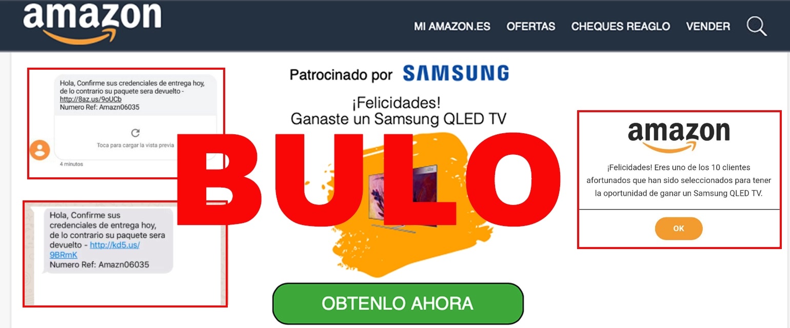 Además, desde la Policía de Alcorcón han alertado de phishing en un caso similar en el que supuestamente Amazon envía por SMS un aviso para recoger un móvil Samsung que también tiene como número de referencia "Amazn06035".