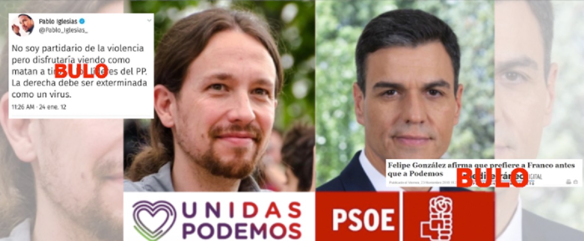 Tras el preacuerdo de Gobierno firmado entre PSOE y Unidas Podemos el 11 de noviembre están circulando varios bulos sobre ambos partidos y sobre sus líderes. Te los contamos: