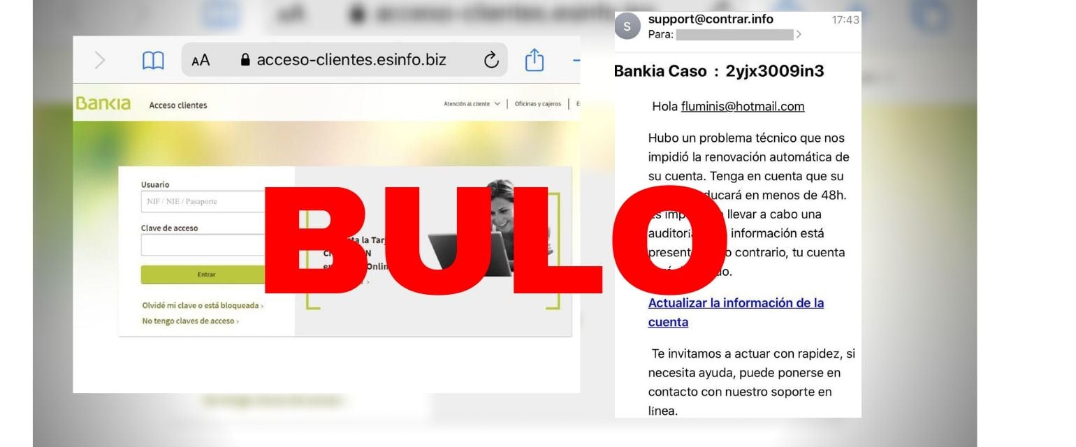 El enlace del correo contenía palabras como "acceso clientes" para que pareciera más verosímil y te dirigía a una página visualmente similar a la oficial de Bankia, que ya ha sido suspendida. Además, ni la URL de la página, ni la cuenta del correo electrónico desde donde se enviaba el mensaje pertenecen a la empresa.