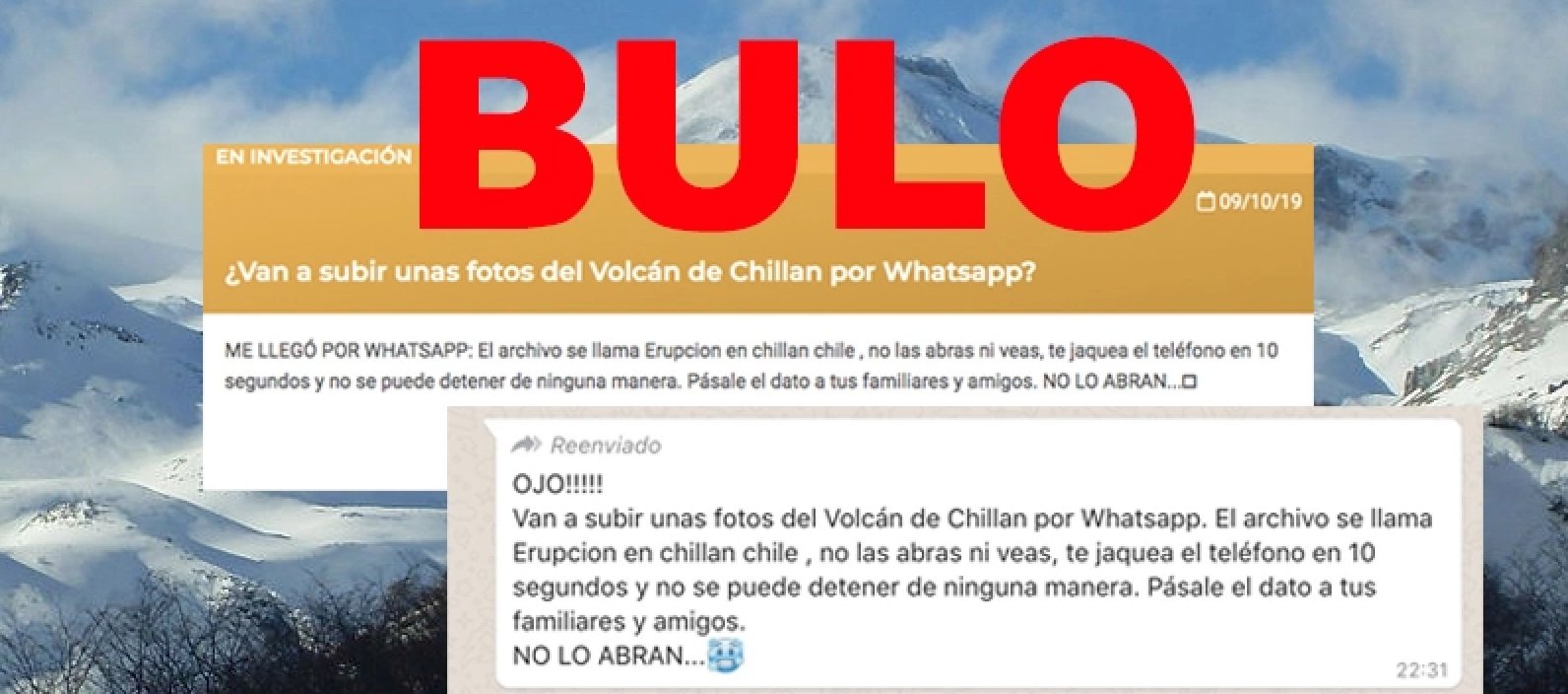 Nos habéis preguntado a través de 'La Buloteca' por una cadena de WhatsApp que afirma que si recibes un archivo que se llama "erupción en Chillán Chile" no debes abrirlo porque lleva un virus que te hackea el móvil. Es un bulo. El mensaje es el siguiente: