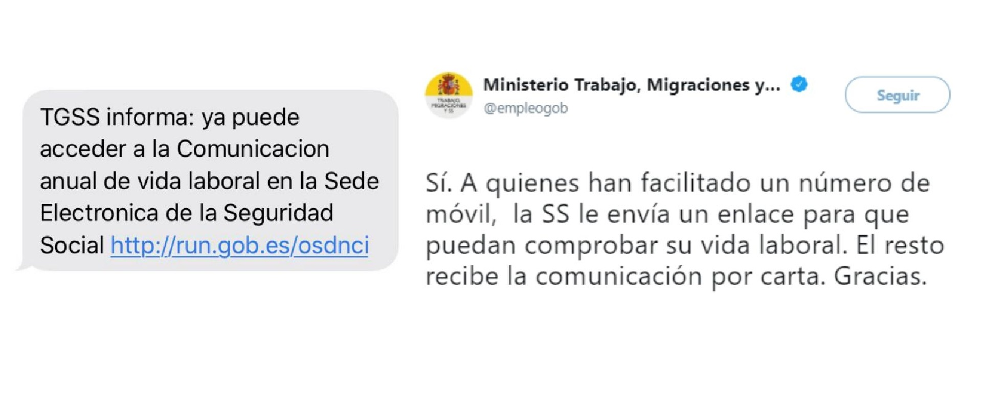 El SMS lo está enviando la Seguridad Social a quienes han facilitado un número de móvil, tal y como ha confirmado el Ministerio de Trabajo, Migraciones y Seguridad Social en Twitter.