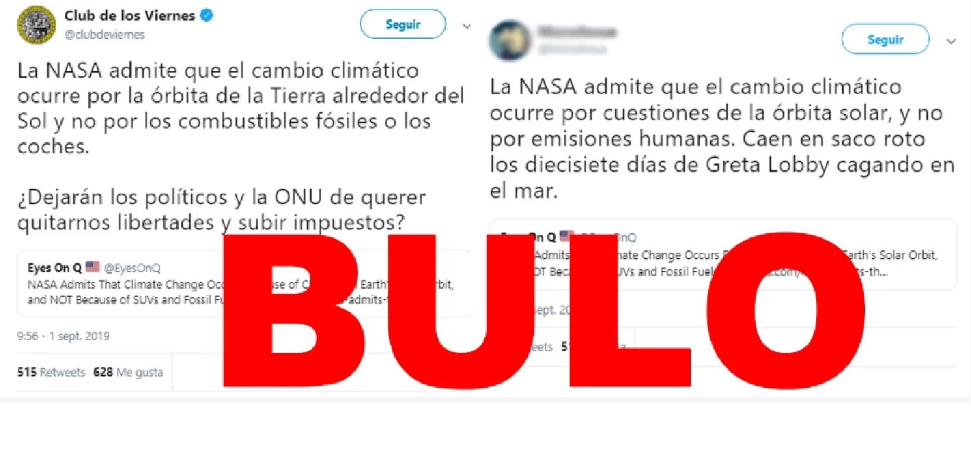 Un contenido en inglés del blog techultras.com que afirma que la "NASA admite que el cambio climático ocurre por los cambios en el sol, en la órbita solar de la Tierra y no por los todoterrenos y los combustibles fósiles" se ha viralizado en castellano en Twitter. También ha sido replicado por el blog laverdadofende.blog. Es un bulo.