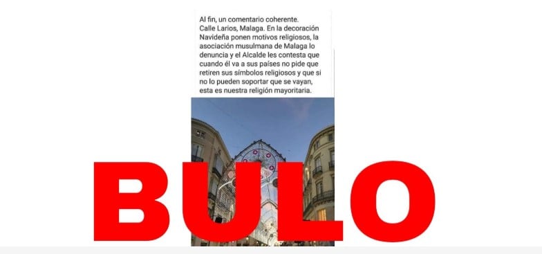 Vuelve a circular un bulo que ya desmentimos en diciembre de 2018. Según el bulo, "la asociación musulmana de Málaga" ha denunciado la decoración navideña de la calle Larios por motivos religiosos. Es un bulo.