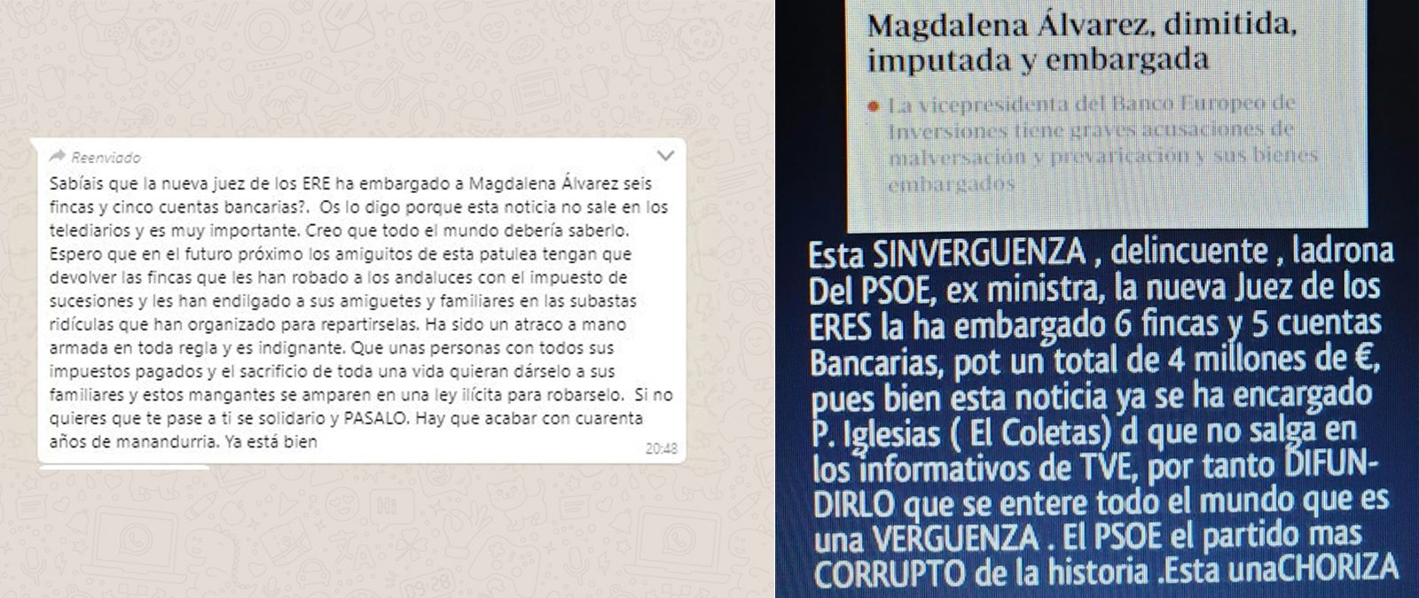 Aunque el contenido que se difunde se hace pasar por actual, se trata de un embargo que sucedió en 2014, cuando la jueza Mercedes Alaya, al cargo de la investigación del caso ERE, decretó el embargo de 6 inmuebles y cinco cuentas bancarias de Magdalena Álvarez. Este embargo se decretó en mayo de 2014 y fue ordenado para cubrir la fianza impuesta a Álvarez de 29 millones y medio de euros. Posteriormente fue recurrido y en octubre del mismo año la Audiencia Provincial de Sevilla ordenó su levantamiento.