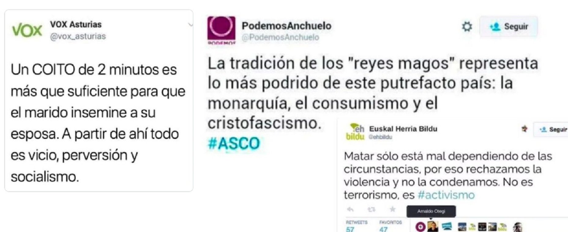 No, no hay pruebas de que Vox Asturias haya tuiteado que "un COITO de 2 minutos es más que suficiente para que el marido insemine a su esposa. A partir de ahí todo es vicio, perversión y socialismo"