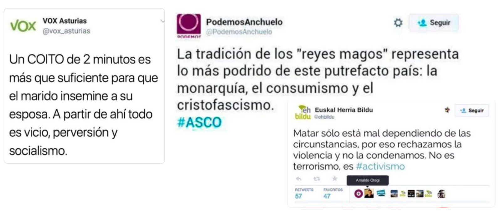 Falsear un tuit de un partido político o hacer circular como real uno enviado por una cuenta falsa es muy fácil. Te contamos algunos de los tuits que nunca fueron publicados por partidos pero que se han movido como reales y te han intentado colar.