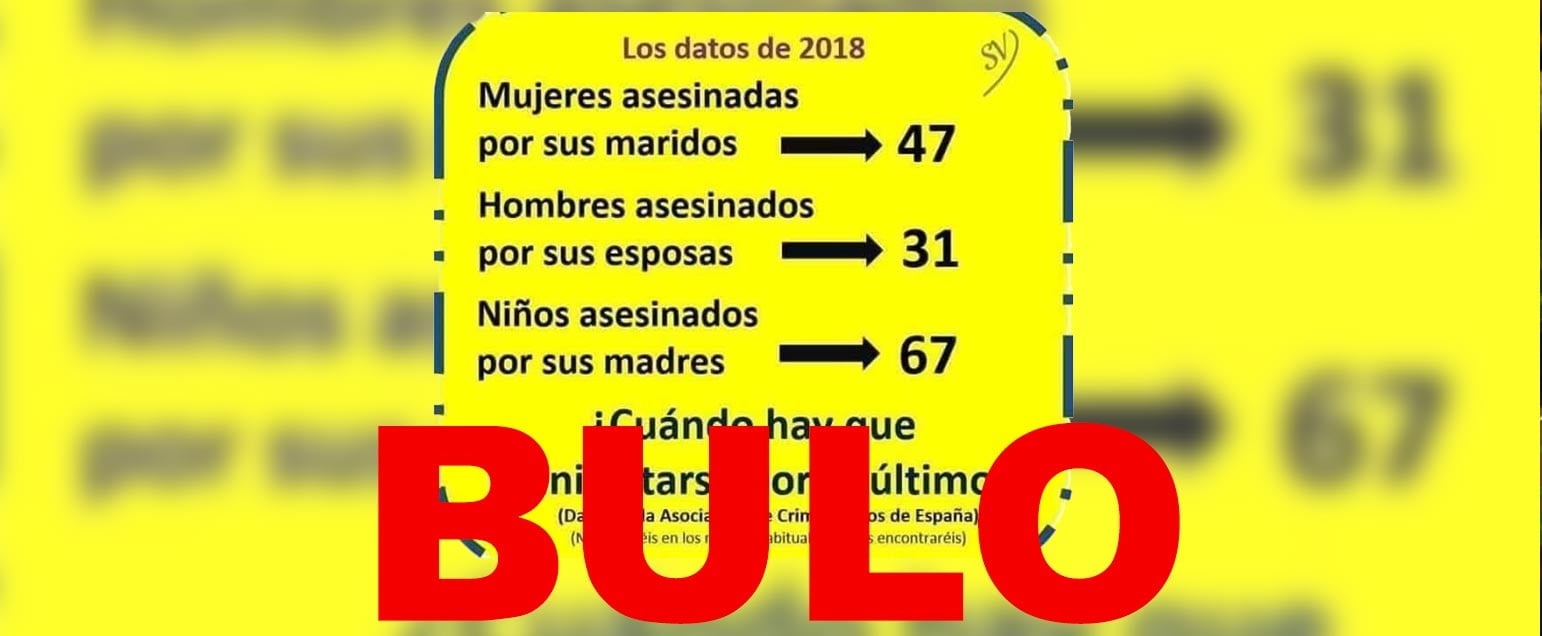 Nos habéis hecho llegar a nuestro servicio de Whatsapp una imagen que circula sobre muertes violentas de "mujeres a manos de sus maridos", "hombres a manos de sus esposas" y "niños a manos de sus madres". Un bulo recurrente que ya hemos desmentido en Maldita.es. Os contamos lo que sabemos: