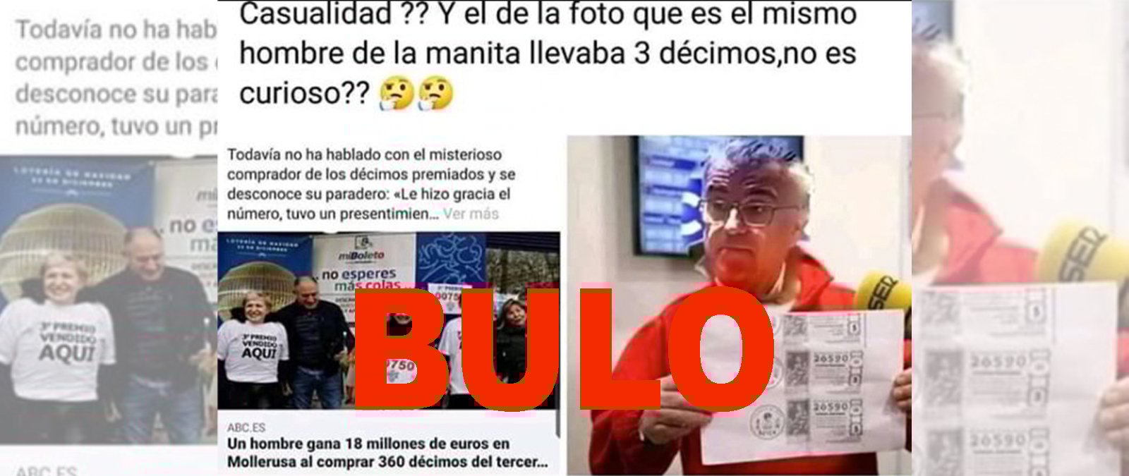 Además, en la imagen que se está difundiendo aparece también una captura de una noticia del diario ABC sobre uno de los agraciados del premio de la lotería de Navidad. En esta noticia se habla del caso de un hombre que habría ganado 18 millones de euros por tener 36 series del tercer premio: el número 00750. La imagen de que encabeza esta noticia es de un establecimiento en Valladolid donde se vendió el número 00750.