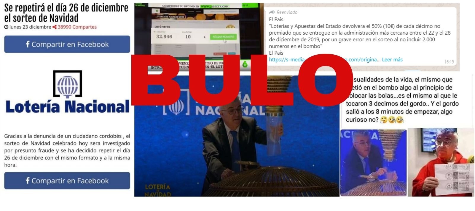 El sorteo extraordinario de la Lotería de Navidad del 22 de diciembre trae consigo los bulos. En el sorteo de 2019 han llegado bulos nuevos y otros viejos han vuelto. Os recopilamos los que hemos desmentido: