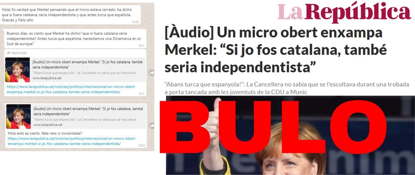 Nos habéis consultado por una publicación de La República titulada '[Audio] Un micro abierto pilla a Merkel: "Si yo fuese catalana, también sería independentista"'. No es cierto: Se trata de una inocentada que se ha viralizado como real.
