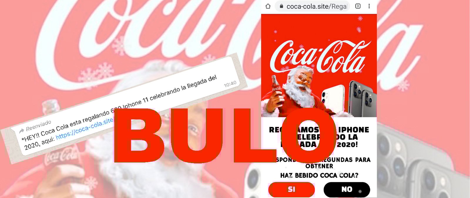 Esta cadena de WhatsApp dice lo siguiente: "Coca Cola esta regalando 600 iPhone 11 celebrando la llegada del 2020" junto con un enlace a una página web. Sin embargo, desde la agencia de comunicación de Coca Cola nos confirman que "el este sorteo no tiene nada que ver con Coca-Cola" y aseguran que "a día de hoy desde Coca-Cola no se está haciendo un sorteo similar".