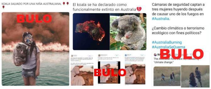 Con la ola de incendios de Australia se han viralizado por redes sociales el vídeo de una mujer abrazando a un canguro como si fuera "la voluntaria que le rescató", una fotografía de una niña con una máscara de gas llevando en brazos a un koala como si le hubiera salvado y el vídeo de tres chicas provocando un incendio en Australia como si fuera actual. Son bulos.