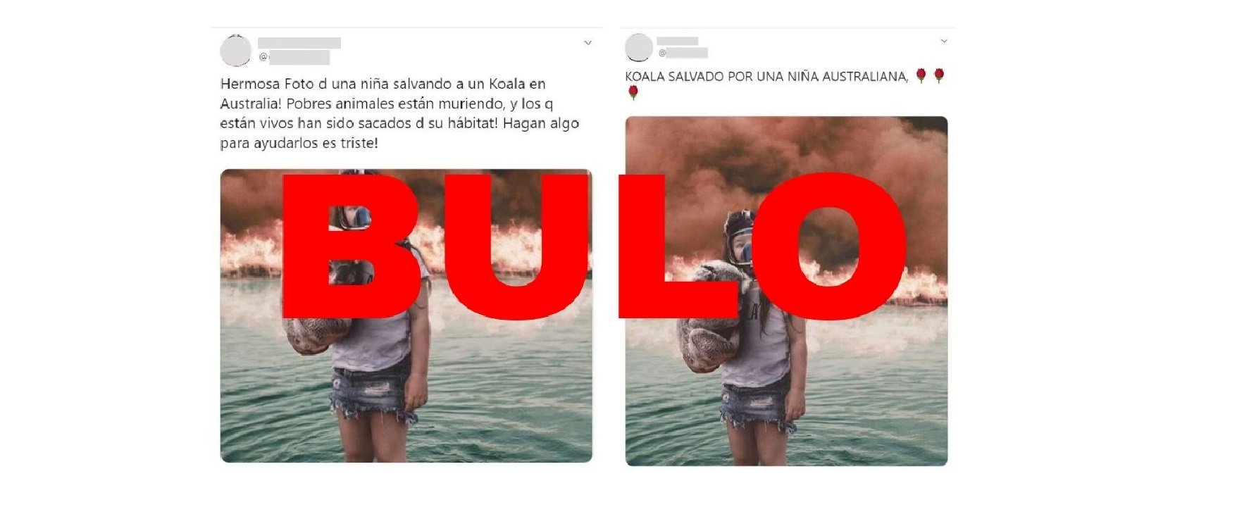 Está circulando en redes sociales la imagen de una joven con una máscara de gas sosteniendo a un koala en sus brazos y los mensajes que acompañan a la fotografía dicen que es "una niña salvando a un koala en Australia". Es un bulo. No es una fotografía real de un incendio en Australia, sino "un montaje con Photoshop", tal y como ha confirmado su autora en las redes sociales donde difundió la publicación.