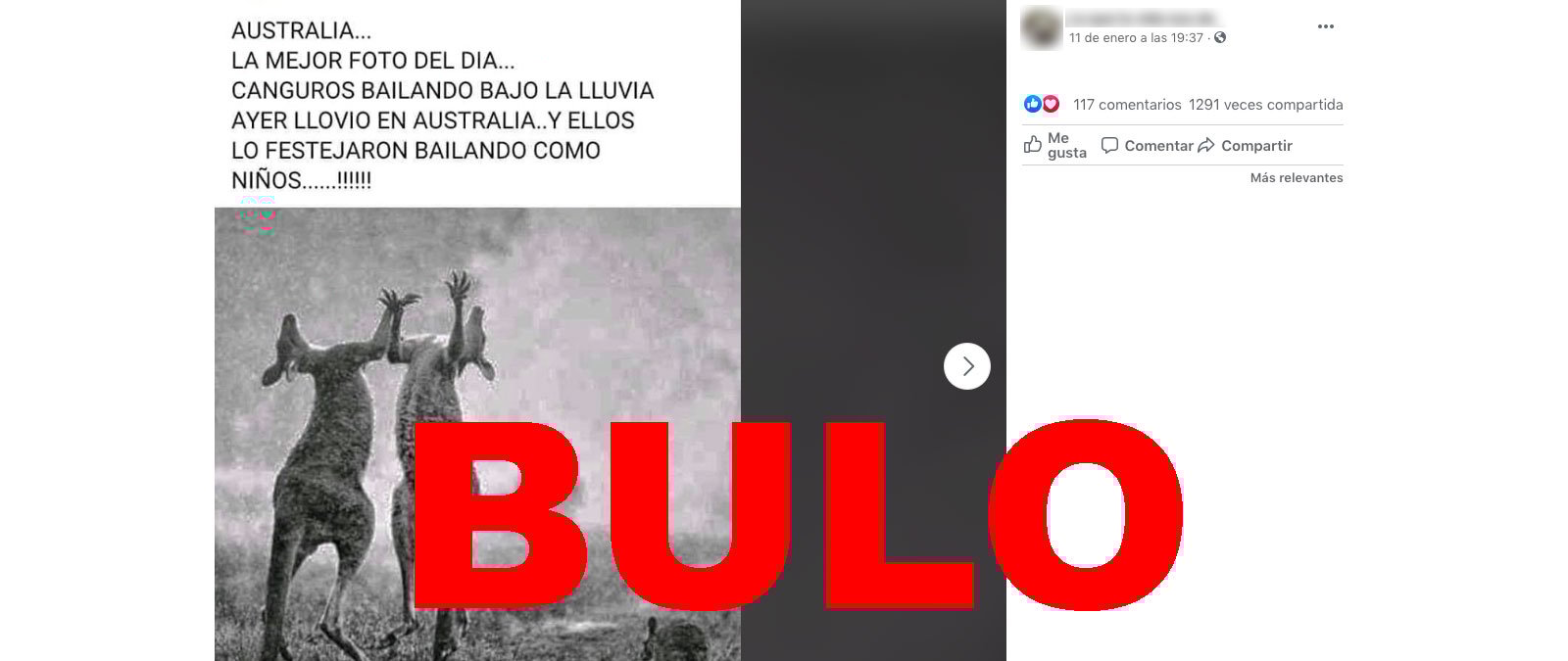 Coincidiendo con los incendios en Australia, se ha empezado a viralizar una foto en la que supuestamente aparecen dos canguros que "festejaron bailando como niños" cuando "ayer llovió" en dicho país. Sin embargo, la imagen fue tomada en realidad en 2014 y los canguros se están peleando.