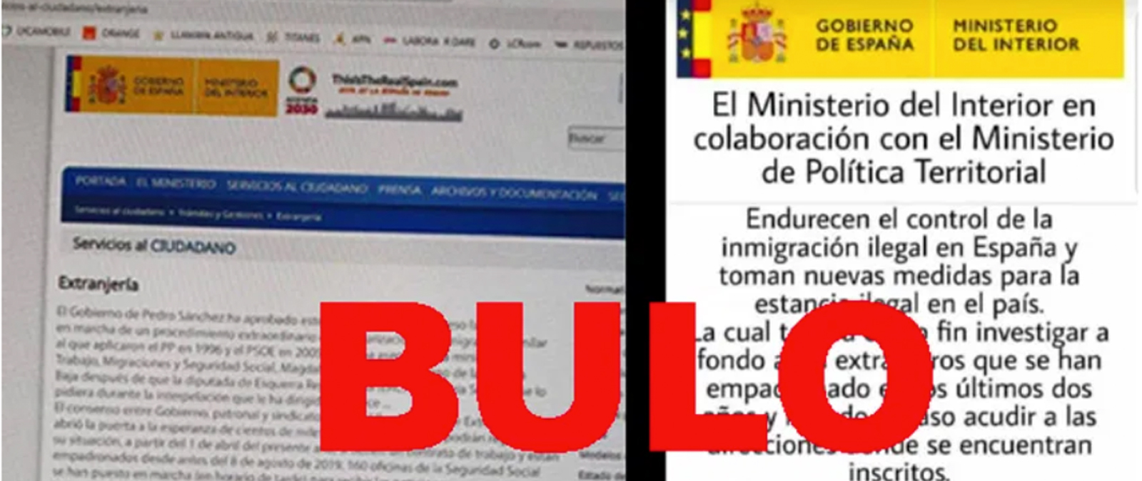 Se ha difundido por redes sociales una imagen de una web que se hace pasar por el Ministerio del Interior y que dice que "el Gobierno de Pedro Sánchez ha aprobado este miércoles en el Congreso la puesta en marcha de un procedimiento extraordinario de regularización de inmigrantes".
