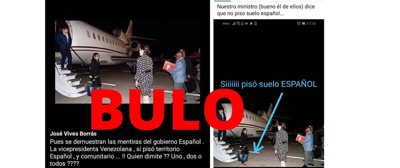 A raíz de la polémica por el encuentro entre el ministro de Transportes, Movilidad y Agenda Urbana, José Luis Ábalos, y la vicepresidenta ejecutiva de Venezuela, Delcy Rodríguez, nos habéis preguntado sobre una imagen donde se puede ver a Rodríguez bajar de un avión mientras varias personas la reciben. El mensaje que acompaña a esta imagen dice que "se demuestran las mentiras del gobierno español" porque "la vicepresidenta venezolana sí pisó territorio español y comunitario". Es un bulo. La fotografía fue tomada en 2016, cuando Rodríguez, entonces canciller venezolana, visitó Argentina para asistir a la reunión de países del Mercado Común del Sur (Mercosur), una alianza comercial entre varios países de Sudamérica.